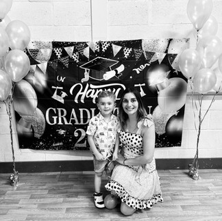 It was now time to head to Cruz's graduation party - luckily both girls finished at lunchtime and came to join me. As soon as i walked in the wonderful staff from Cruz's pre-school offered me a glass of fizz with a smile and said 'you look like you need one of these today and a hug' they weren't wrong. Cruz was called up to collect his graduation certificate and award and the girls were cheering him like something you would see at an American baseball game, I smiled with such pride and would you believe, my eyes were leaking lol. The party was in full swing and the kids were having a great time at the disco with the magician and of course the buffet - all 3 of our kids love food! Cruz's teacher came over and handed me some photographs of him in his graduation cap and gown and it just sent me over the edge - the tears were flowing like a river at this point.